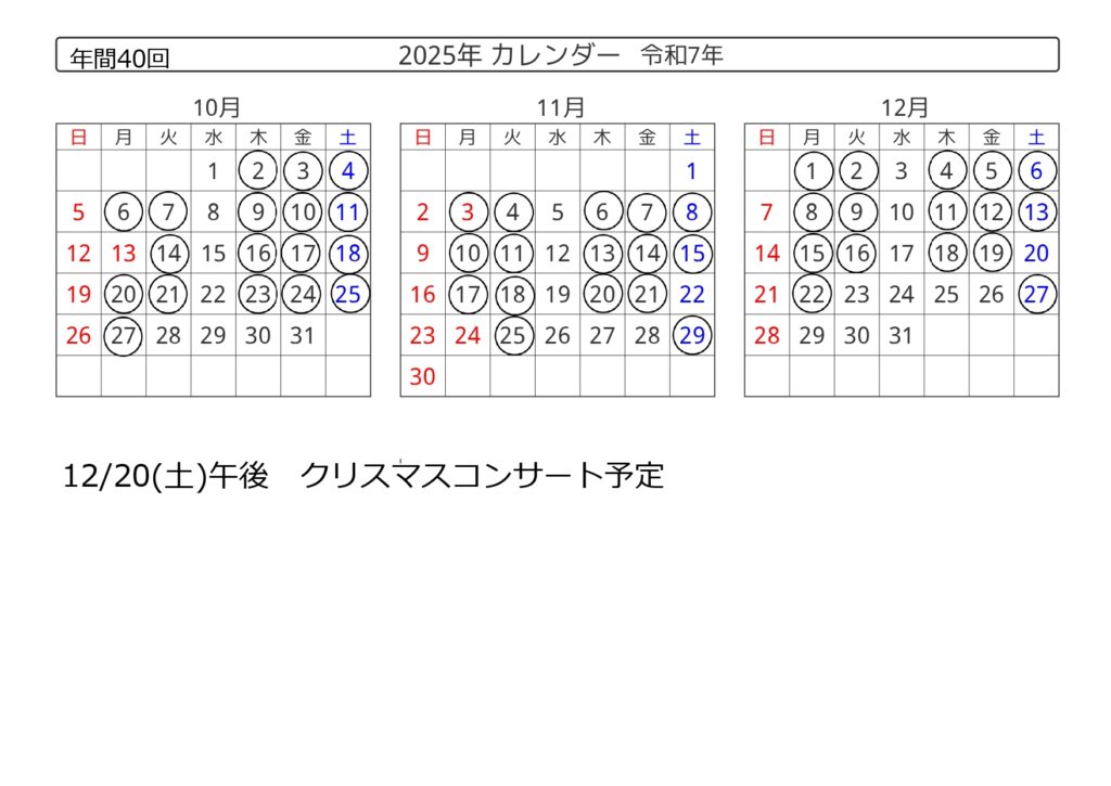 - 2025.09.16お知らせ2025年10月~12月レッスンカレンダー